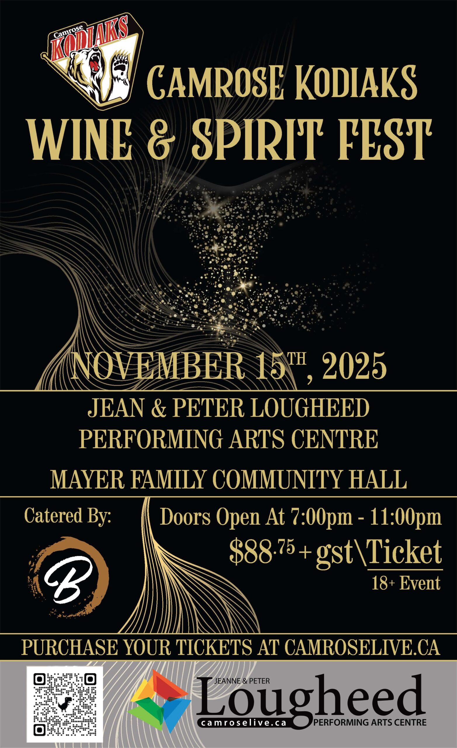 The Wine and Spirits Fest is a vibrant social event where guests can indulge in a diverse selection of both wines, spirits and craft beer while supporting the Camrose Kodiak’s hockey team. This event combines the best of fine wines, premium spirits, local craft beer and gourmet food.