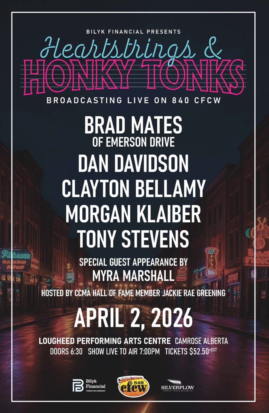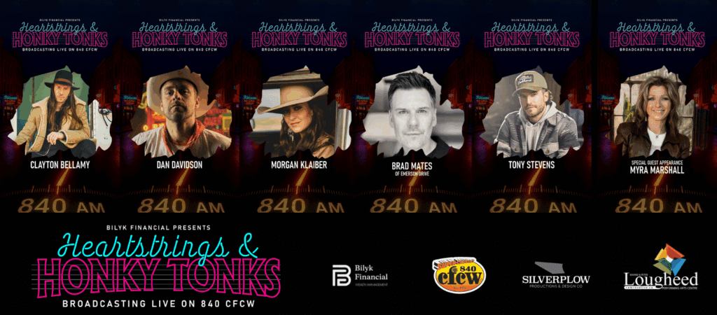 After two sold out season in 2024 & 2025, along with back to back nominations for CCMA Country Music Special or Event Of The Year, Heartstrings & Honky Tonks series returns in 2026 with another series of incredible shows that will allow both the artists and audience to be part of something truly special as the performances are broadcast live on 840 AM radio. These events will be hosted by Canadian Country Hall of Fame Member Jackie Rae Greening and will take place in theaters in Sherwood Park, St. Albert, Camrose, and Bonnyville Alberta as we continue to celebrate more than 70 years of CFCW radio.